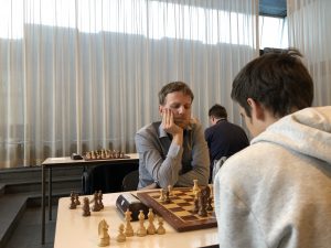 Yochanan Afek ging agressief af op de zwarte koning. Hij had naar eigen zeggen op meerdere manieren kunnen winnen, maar de aanvalsmachine haperde. De tegenstander miste ook nog een grote kans en uiteindelijk moesten beide spelers voor remise kiezen. Fred Jonker speelde een fraaie partij. Met kleine middelen voerde hij de aanvalsdruk op. De tegenstander verdedigde lange tijd goed, maar maakte uiteindelijk toch een fout die een pion kostte. Jonker voerde het eindspel fraai naar winst. Jeroen Franssen gaf in iets betere stelling ook een pion weg. Daarna kwam er geen goede zet meer uit zijn vingers en verloor hij. Het beslissende halfje voor Wageningse winst kwam van Sander van Eijk. Hij bereikte een curieus eindspel van twee lopers tegen een paard. Dat is theoretisch gewonnen, maar in de praktijk erg lastig. Van Eijk moest dan ook in remise berusten.