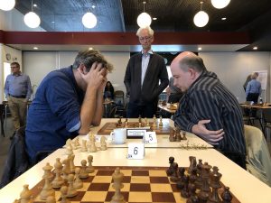 Even leek het een zware middag te worden, maar rond de 40e zet vielen een paar partijen in Wagenings voordeel uit. Arjen van Herwaarden won een kwaliteit, gaf die weer terug voor twee pionnen en had vervolgens een onweerstaanbare aanval. Tjerk Sminia had lange tijd controle over het centrum. Net toen zijn tegenstander de bevrijdende zet dacht te spelen, kon Sminia een stuk winnen. Nog even dreigde eeuwig schaak, maar met nauwkeurig spel haalde Sminia de partijwinst binnen. Jan Timman toonde maar weer eens zijn grootmeesterlijke klasse. Met een onverbiddelijke techniek breidde hij zijn voordeel uit. “Een genot om die man ook nu nog te zien schaken. Behalve als je aan het andere kant van bord zit”, aldus zijn tegenstander na afloop.