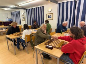We zijn weer over de helft van ons schaakseizoen, en dat betekent dat het weer tijd is voor het snelschaakkampioenschap. De club heeft weer voor wat prijsjes gezorgd en de titelverdediger, Kees Stap, nam braaf zijn beker weer mee terug. Uiteraard was het zijn insteek om diezelfde avond zijn titel te prolongeren.