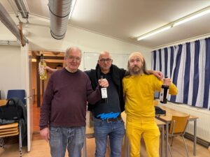 Jeroen Franssen met 4.5/7 op plek 3. Kees Stap met 4.5/7 op plek 2 (onderling gewonnen van #3). En Erwin op plek 1 met 6/7 en dus de nieuwe snelschaakkampioen!